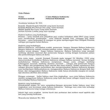 CONTOH 6 Contoh Pidato Singkat tentang Hari Kemerdekaan Assalamualaikum wr wb. Sidang hadirin sekalian indahnya bahasa melayu begitu halus sehingga menusuk kalbu. Bahasa lambang perpaduan rakyat assalamualaikum salam sejahtera salm pidato piala diraja.